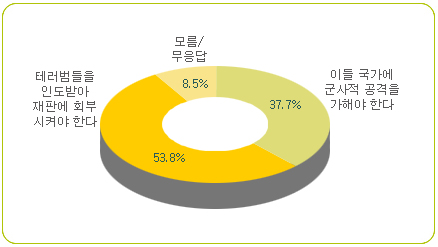 > 2001³â 09¿ù 19ÀÏ Çѱ¹°¶·´ Release ¹Ì±¹ Å×·¯ ´ëÂü»ç¿¡ ´ëÇÑ ¿©·Ð Á¶»ç *º» ¸®Æ÷Æ®ÀÇ »ó¼¼ÀÚ·á(±³Â÷Áý°èÇ¥)´Â °¶·´ÆÐ³Î ·Î±×ÀÎ ÈÄ Á¶»çÀÚ·á½Ç¿¡¼ ¿¶÷ÇÏ½Ç ¼ö ÀÖ½À´Ï´Ù. *°¶·´¸®Æ÷Æ®ÀÇ ³»¿ëÀ» ÀοëÇÏ½Ç ¶§¿¡´Â ¹Ýµå½Ã Ãâó¸¦ ¹àÇôÁֽñ⠹ٶø´Ï´Ù. Çѱ¹°¶·´¿¡¼´Â Áö³ 9¿ù 11ÀÏ ¹Ì±¹¿¡¼ ¹ß»ýÇÑ Å×·¯Âü»ç¿Í °ü·ÃµÈ ±¹¹ÎµéÀÇ ÀǰßÀ» ¾Ë¾Æº¸±â À§ÇØ Àü±¹ÀÇ ¸¸ 20¼¼ ÀÌ»ó ¼ºÀγ²³à 1066¸íÀ» ´ë»óÀ¸·Î 9¿ù 15ÀÏ ÀüÈÁ¶»ç¸¦ ½Ç½ÃÇÏ¿´½À´Ï´Ù. ÀÌ Á¶»ç´Â Gallup International ȸ¿ø±¹µé°ú ÇÔ²² °øµ¿À¸·Î ½Ç½ÃÇÑ °ÍÀ¸·Î Å×·¯Âü»ç ÀÌÈÄ ¹Ì±¹ÀÇ Åµµ¿¡ ´ëÇÑ ¿ì¸® ±¹¹Îµé°ú ¼¼°è 30°³±¹ÀÇ ÀǰßÀ» ¾Ë¾Æº¸´Â °è±â°¡ µÉ °ÍÀÔ´Ï´Ù. * ÀÌ Á¶»çÀÇ Âü¿©±¹°¡´Â ¼ºÎ À¯·´ 13°³±¹, Áß/µ¿ À¯·´ 7°³±¹, ¹Ì±¹, À̽º¶ó¿¤, ÆÄŰ½ºÅºÀ» Æ÷ÇÔÇÑ ±âŸ³ª¶ó 10°³±¹µî ÃÑ 30°³±¹ÀÔ´Ï´Ù. ¹Ì±¹Á¤ºÎÀÇ ¹Ù¶÷Á÷ÇÑ ´ëÀÀ¹æ¾ÈÀº ¸ÕÀú Å×·¯¹üµéÀ» Àεµ¹Þµµ·Ï ³ë·ÂÇØ¾ß 53.8% À̹ø ¹Ì±¹ Å×·¯»ç°ÇÀÇ ¹üÀÎÀÌ ¹àÇôÁú °æ¿ì¿¡ ¹Ì±¹ Á¤ºÎÀÇ ´ëÀÀ¹æ¾È°ú °ü·ÃÇØ Áú¹®ÇÑ °á°ú, ''Å×·¯¹üµéÀÌ Àº½ÅÇϰí ÀÖ´Â ±¹°¡¿¡ ±º»çÀû °ø°ÝÀ» ÇØ¾ß ÇÑ´Ù'' 37.7%, ''Å·¯¹üµéÀ» Àεµ¹Þµµ·Ï ³ë·ÂÇØ¼ À̵éÀ» ÀçÆÇ¿¡ ȸºÎ½ÃÄÑ¾ß ÇÑ´Ù'' 53.8%·Î ³ªÅ¸³ª, ¿ì¸® ±¹¹ÎµéÀº Å×·¯¸®½ºÆ® ȤÀº Å×·¯¸®Áò¿¡ ´ëÇÑ ¹Ì±¹ÀÇ ±º»çÀû º¸º¹ °ø°Ýº¸´Ù ¹üÀεéÀÇ ±¹Á¦ÀçÆÇ ȸºÎ µî°ú °°Àº ÆòÈÀû ¹æ¹ýÀ» ´õ ¹Ù¶÷Á÷ÇÏ°Ô ¿©±â°í ÀÖ´Â °ÍÀ¸·Î ³ªÅ¸³µ´Ù. Å×·¯¹üÀÌ Àº½ÅÇϰí ÀÖ´Â ±¹°¡¿¡ ¹Ì±¹ Á¤ºÎ°¡ ±º»çÀû °ø°ÝÀ» ÇØ¾ß ÇÑ´Ù´Â ÀǰßÀº ¿©ÀÚ(30.6%)º¸´Ù ³²ÀÚ(45.1%), ±×¸®°í ¿¬·ÉÀÌ ³ô¾ÆÁú¼ö·Ï ¸¹¾Ò´Ù. ¹Ý¸é, Å×·¯¹üµéÀ» Àεµ¹Þ¾Æ ±¹Á¦ÀçÆÇµî¿¡ ȸºÎ½ÃÄÑ¾ß ÇÑ´Ù´Â ÀÀ´äÀº ¿©ÀÚ(57.2%), 20´ë ¿¬·ÉÃþ(62.8%), ´ëÀçÀÌ»ó °íÇзÂÃþ(60.1%), ´ëÇлý(62.8%), ±×¸®°í ÈÀÌÆ®Ä®¶ó°èÃþ(59.2%)¿¡¼ ¸¹¾Æ Àú¿¬·É, °íÇзÂÃþÀϼö·Ï Å×·¯¿¡ ´ëÇÑ ¹Ì±¹ Á¤ºÎÀÇ ±º»çÀû ´ëÀÀ¿¡ ´ú µ¿Á¶ÀûÀÎ °ÍÀ¸·Î ³ªÅ¸³µ´Ù. < Å×·¯ °ü·Ã ¹Ì±¹ Á¤ºÎÀÇ ´ëÀÀ¹æ¾È >