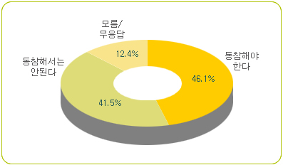 Çѱ¹ÀÇ ¹Ì ±º»ç°ø°Ý µ¿Âü Âù¹Ý ¾ù°¥·Á ºÏ´ë¼¾çÁ¶¾à±â±¸(NATO)ÀÇ µ¿¸Í±¹µé°ú ¿µ±¹, ½Ã¾Æ µîÀÇ ±¹°¡µéÀÌ ¹Ì±¹ÀÇ Å×·¯ ´ëÀÀ ±º»ç°ø°Ý¿¡ µ¿ÂüÇÒ °ÍÀ» ¹àÈ÷°í ÀÖ´Â °¡¿îµ¥, ¹Ì±¹ÀÇ ±º»ç°ø°Ý¿¡ Çѱ¹ÀÌ µ¿ÂüÇØ¾ß ÇÏ´Â Áö¿¡ ´ëÇØ¼´Â ''µ¿ÂüÇØ¾ß ÇÑ´Ù'' 46.1%, ''µ¿ÂüÇØ¼´Â ¾ÈµÈ´Ù'' 41.5%·Î ÀǰßÀÌ ¾ù°¥¸®°í ÀÖ´Â °ÍÀ¸·Î ³ªÅ¸³µ´Ù. ¹Ì±¹ÀÇ ±º»ç°ø°Ý¿¡ ¿ì¸®³ª¶óµµ µ¿ÂüÇØ¾ß ÇÑ´Ù´Â ÀǰßÀº 4,50´ë ¿¬·ÉÃþ(°¢°¢ 51.5%, 51.3%) ¹× ³ó/ÀÓ/¾î¾÷ Á¾»çÀÚµé(60.0%)¿¡°Ô¼ ³ô¾Ò´ø ¹Ý¸é, Çѱ¹ÀÇ µ¿ÂüÀ» ¹Ý´ëÇÏ´Â ÀǰßÀº ¿¬·ÉÀÌ ³·¾ÆÁú¼ö·Ï, ÇзÂÀÌ ³ô¾ÆÁú¼ö·Ï ¸¹¾ÒÀ¸¸ç, Á÷¾÷º°·Î´Â Çлý(65.5%),±×¸®°í ÈÀÌÆ®Ä®¶ó °èÃþ(53.3%)¿¡¼ »ó´ëÀûÀ¸·Î ¸¹¾Ò´Ù. < ¹Ì ±º»ç°ø°Ý½Ã Çѱ¹ µ¿Âü¿©ºÎ >