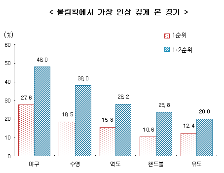 À̹ø ¿Ã¸²ÇÈ¿¡¼ ¿ì¸®³ª¶ó´Â ±Ý 13, Àº 10, µ¿¸Þ´Þ 8°³·Î ¿ª´ë ¿Ã¸²ÇÈ ÃÖ´Ù ±Ý¸Þ´ÞÀ» ȹµæÇϸç Á¾ÇÕ 7À§¿¡ ¿Ã¶ó ¡®Åé10¡¯ ÁøÀÔÀÇ ¸ñÇ¥¸¦ ´Þ¼ºÇß´Ù. ÀÌ¿¡ Çѱ¹°¶·´¿¡¼´Â ¸¸ 19¼¼ ÀÌ»ó ±¹¹ÎÀ» ´ë»óÀ¸·Î º£ÀÌ¡ ¿Ã¸²ÇÈ¿¡ ´ëÇÑ ±¹¹ÎµéÀÇ ÀνÄÀ» ¾Ë¾Æº¸±â À§ÇÑ Á¶»ç¸¦ ½Ç½ÃÇß´Ù.