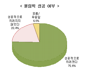ÀÌ´Â 4³â Àü ¾ÆÅ×³× ¿Ã¸²ÇÈ Á÷ÈÄ Á¶»ç¿¡¼ ¿ì¸® ±¹¹ÎÀÇ 61.7%°¡ ¼º°øÀûÀ̾ú´Ù°í Æò°¡ÇÑ °Í¿¡ ºñÇØ 13.9%Æ÷ÀÎÆ® ³ô¾ÆÁø °ÍÀÌ´Ù.
