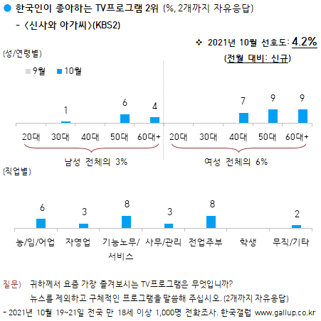 2021³â 10¿ù Çѱ¹ÀÎÀÌ ÁÁ¾ÆÇÏ´Â TVÇÁ·Î±×·¥ 2À§: ¡´½Å»ç¿Í ¾Æ°¡¾¾¡µ(KBS2) 4.2%