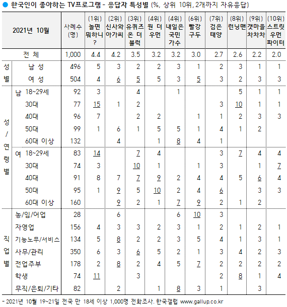 - [GallupReport(20211026)_Çѱ¹ÀÎÀÌÁÁ¾ÆÇÏ´ÂTVÇÁ·Î±×·¥(2021³â10¿ù).pdf] ´Ù¿î·Îµå