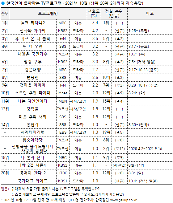 - Çѱ¹ÀÎÀÌ ÁÁ¾ÆÇÏ´Â TVÇÁ·Î±×·¥ - 2021³â 10¿ù