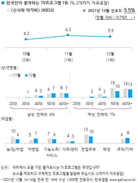 2021³â 12¿ù Çѱ¹ÀÎÀÌ ÁÁ¾ÆÇÏ´Â TVÇÁ·Î±×·¥ 1À§: ¡´½Å»ç¿Í ¾Æ°¡¾¾¡µ(KBS2) 5.5%