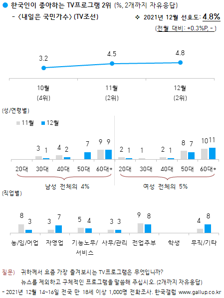 2021³â 12¿ù Çѱ¹ÀÎÀÌ ÁÁ¾ÆÇÏ´Â TVÇÁ·Î±×·¥ 2À§: ¡´³»ÀÏÀº ±¹¹Î°¡¼ö¡µ(TVÁ¶¼±) 4.8%