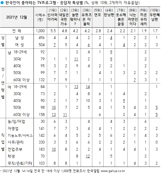 - [GallupReport(20211221)_Çѱ¹ÀÎÀÌÁÁ¾ÆÇÏ´ÂTVÇÁ·Î±×·¥(2021³â12¿ù).pdf] ´Ù¿î·Îµå
