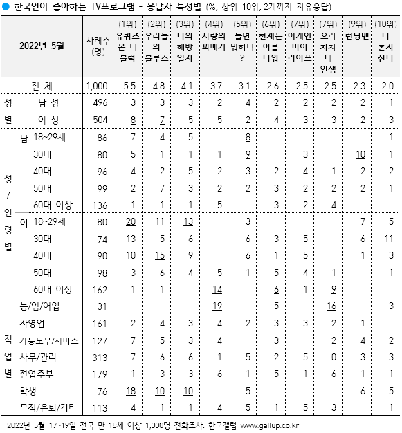 - [GallupReport(20220524)_Çѱ¹ÀÎÀÌÁÁ¾ÆÇÏ´ÂTVÇÁ·Î±×·¥(2022³â05¿ù).pdf] ´Ù¿î·Îµå