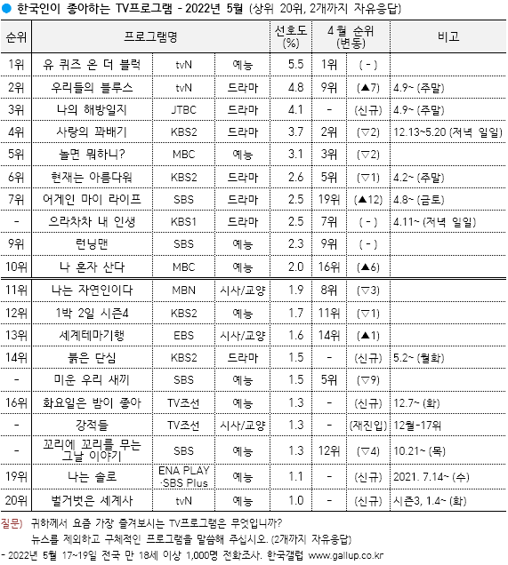 Çѱ¹ÀÎÀÌ ÁÁ¾ÆÇÏ´Â TVÇÁ·Î±×·¥ - 2022³â 5¿ù