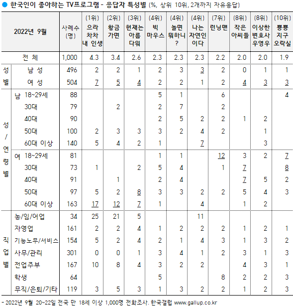 - [GallupReport(20220926)_ÁÁ¾ÆÇÏ´ÂTVÇÁ·Î±×·¥(2022³â09¿ù).pdf] ´Ù¿î·Îµå