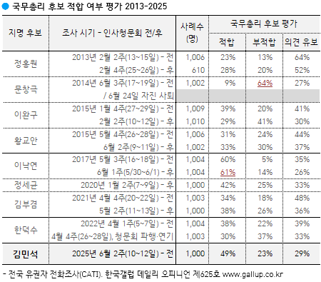 [±è¹Î¼® Èĺ¸] ±¹¹«ÃѸ®·Î 'ÀûÇÕÇÏ´Ù' 49%, 'ÀûÇÕÇÏÁö ¾Ê´Ù' 23%