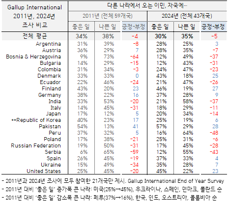 - ¿Ü±¹¿¡¼ ¿À´Â À̹Î(ì¹ÚÅ), ±¹³» °ÅÁÖ À̹ÎÁ·(ì¶ÚÅðé) °ü·Ã ÀÎ½Ä - Gallup International ´Ù±¹°¡ Á¶»ç