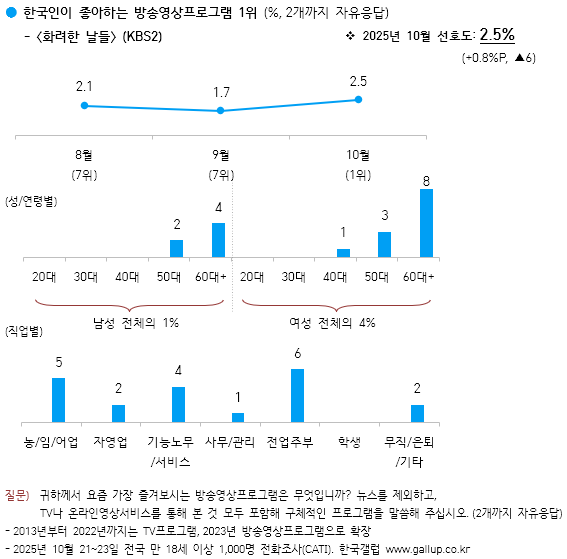 · 2025³â 10¿ù ÁÁ¾ÆÇÏ´Â ¹æ¼Û¿µ»óÇÁ·Î±×·¥ 1À§: KBS2 ÁÖ¸»±Ø ¡´È·ÁÇÑ ³¯µé¡µ 2.5%