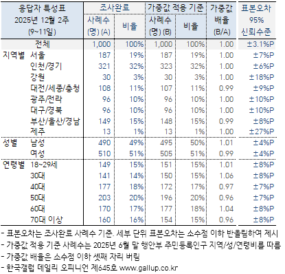 ¾Æ·¡ ÀÀ´äÀÚ Æ¯¼ºÇ¥ÀÇ Á¶»ç¿Ï·á »ç·Ê¼ö´Â ½ÇÁ¦ ÀÀ´ä ¿Ï·áÇÑ Àοø, °¡Áß°ª Àû¿ë ±âÁØ »ç·Ê¼ö´Â 2025³â 6¿ù ¸» ÇàÁ¤¾ÈÀüºÎ Áֹεî·ÏÀα¸ Áö¿ª/¼º/¿¬·É ºñÀ²¿¡ µû¸¥ ÀοøÀÌ´Ù.