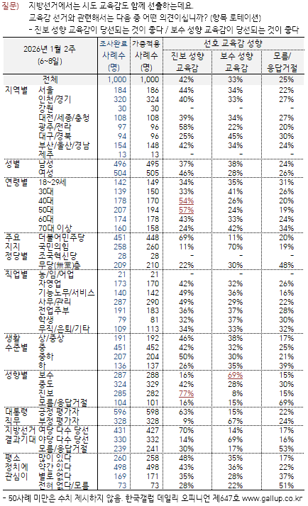Áö¹æ¼±°Å¿¡¼´Â ½Ãµµ ±³À°°¨µµ ÇÔ²² ¼±ÃâÇÑ´Ù. ±³À°°¨ ¼±°Å¿Í °ü·ÃÇØ¼´Â À¯±ÇÀÚÀÇ 42%°¡ 'Áøº¸ ¼ºÇâ ±³À°°¨ÀÌ ´ç¼±µÇ´Â °ÍÀÌ ÁÁ´Ù', 33%´Â 'º¸¼ö ¼ºÇâ ±³À°°¨ÀÌ ´ç¼±µÇ´Â °ÍÀÌ ÁÁ´Ù'°í ´äÇß´Ù(Ç׸ñ ·ÎÅ×À̼Ç). 25%´Â ÀǰßÀ» À¯º¸Çß´Ù. ¾ÆÁ÷ Á¤´çº° Áö¹æ¼±°Å Èĺ¸ °øÃµ ÀýÂ÷°¡ º»°ÝÈÇÏÁö ¾Ê¾Ò°í, È帱ºµµ ¾ÐÃàµÇÁö ¾Ê¾Æ ¼±Çà Áö¹æ¼±°Å ±â´ë¿Í °áÀ» °°ÀÌÇÑ ¼±ÅÃÀ¸·Î º¸ÀδÙ.