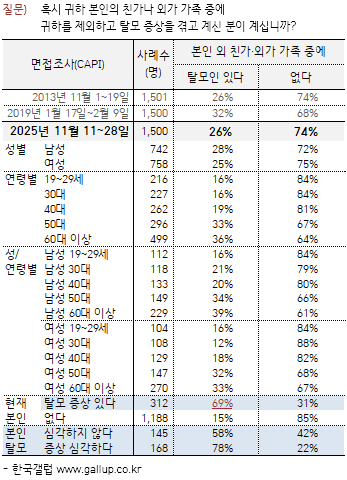 · Å»¸ðÀÎ 69% 'Ä£°¡·¿Ü°¡¿¡ Å»¸ðÀÎ °¡Á· ÀÖ´Ù', ºñÅ»¸ðÀÎÀº 15%