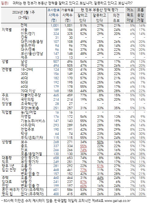 ºÎµ¿»ê Á¤Ã¥ Æò°¡: 'ÀßÇϰí ÀÖ´Ù' 51%, 'À߸øÇϰí ÀÖ´Ù' 27%