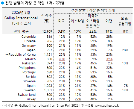 ¹Ì±¹·À̽º¶ó¿¤-À̶õ ÀüÀï °ü·Ã ÀνÄ: Gallup International ´Ù±¹°¡ Á¶»ç
