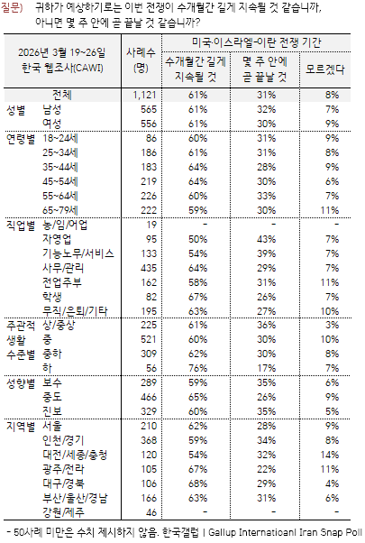 [ÀüÀï ±â°£] '¼ö°³¿ù°£ ±æ°Ô Áö¼ÓµÉ °Í' 59%, '¸î ÁÖ ¾È¿¡ ³¡³¯ °Í' 26%