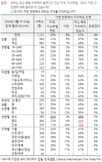 · ¼ºÇâ º¸¼öÃþ Àý¹Ý°¡·®(46%) ¹Ì±¹·À̽º¶ó¿¤ ¿¬ÇÕ ÁöÁö; ÁßµµÃþ 22%, Áøº¸Ãþ 11%