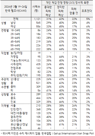 - 2026³â 3¿ù 15°³±¹ ¼ºÀÎ ÃÑ 12,909¸í CAWI/CATI(À¥Á¶»ç/ÀüÈÁ¶»ç)(¹®Ç׺° Âü¿©±¹ »óÀÌ)