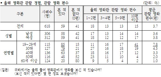 ¡Ü Æò±Õ °ü¶÷ ¿µÈ Æí¼ö 3.7Æí, 20´ë¿¡¼ 7.8ÆíÀ¸·Î °¡Àå ¸¹¾Æ