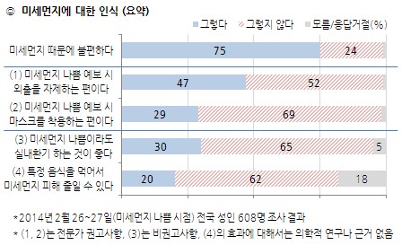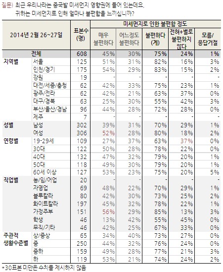 ¡Ü ¹Ì¼¼¸ÕÁö ¶§¹®¿¡ 'ºÒÆíÇÏ´Ù' 75% - '¸Å¿ì ºÒÆí' 45%